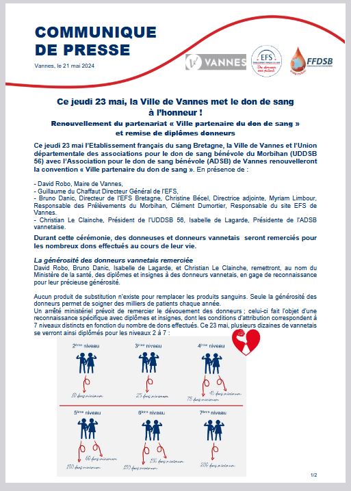 Vannes aux couleurs du don de sang pour la journée mondiale