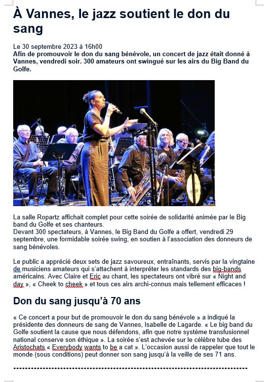 Concert joué par l’orchestre « Les Musiques du Golfe le vendredi 29 septembre