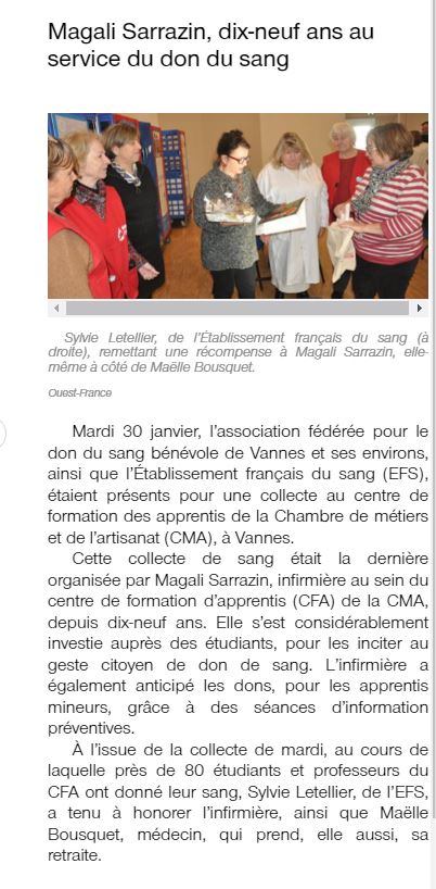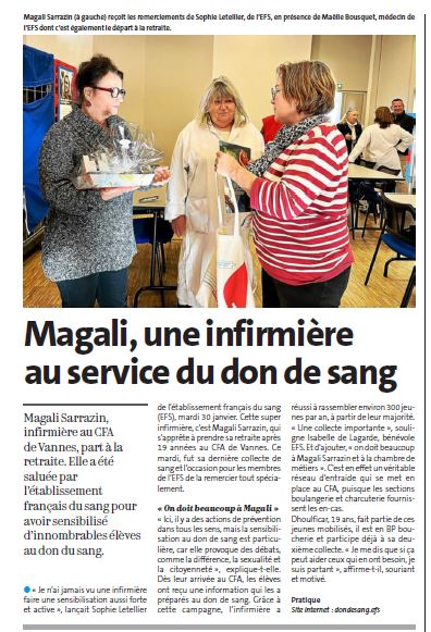 Remerciements à Magali Sarrazin, infirmière au CFA/CMA