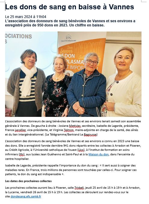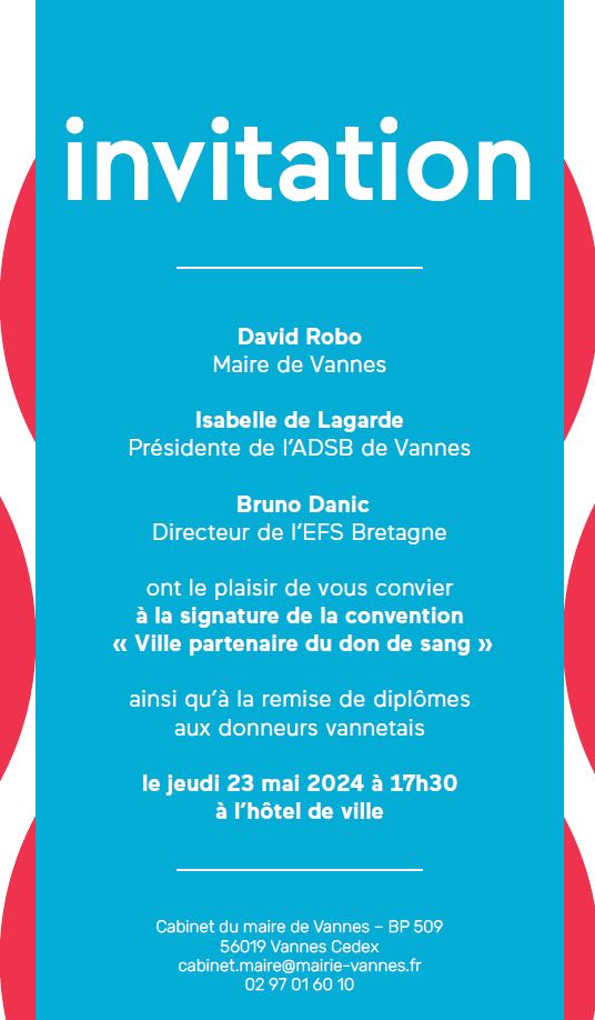 Jeudi 23 mai Cérémonie de remise de prix aux donneurs et renouvellement de la signature tripartite (association/EFS/municipalité)
