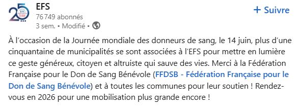 Dimanche 27 août avec la participation des bénévoles et de l’EFS « Établissement Français du Sang